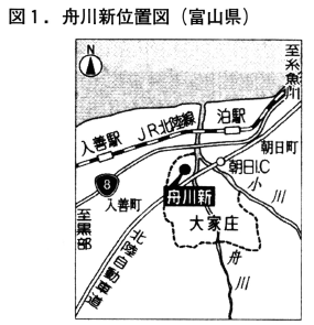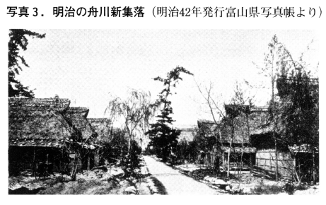 大家庄村舟川新(現朝日町)は江戸時代に開墾された新田で,黒部川の氾濫を度々受ける「黒部四十八ヶ瀬」と称される地域で,耕土の浅い排水不良の水田地帯であった。水路は曲がりくねり,水田も小さなものが大部分であった。集落は散居形態で防風の屋敷林や点在する雑木林で水田は陰地が多い生産性の低い地帯であった。