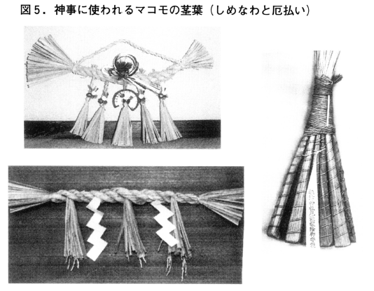 ①マコモは全国的に神事に関わっており,神社,仏閣とつなげばどこでも容易に物語ができる。