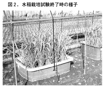 水田内に,水田シラス土壌を深さ0.25m充填した有底の枠を埋設し,基肥窒素4.0gm-2+穂肥窒素3.0gm-2の慣行施肥条件下で,普通期水稲’ヒノヒカリ’を栽培した。移植は6月中旬,収穫は10月上旬に行った(図2)。