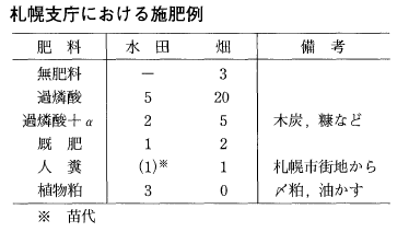 明治39年9月の殖民公報に,札幌近郊の村々における施肥実態調査の結果が登載されている。