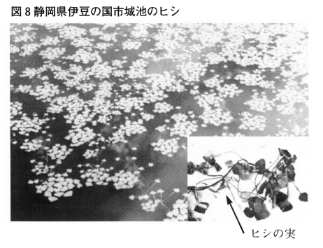 アジア,アメリカ,アフリカ,オーストラリアなどの温帯域に広く分布し,我が国では北海道から九州までの自然池沼や灌漑用溜池に群生する浮葉性の多年生水草である(図6)。茎や葉柄,新芽などが粘質物に覆われ,葉身は広楕円形で水面に浮き,夏に暗紅色の小さな花が水面上に咲く(図7)。