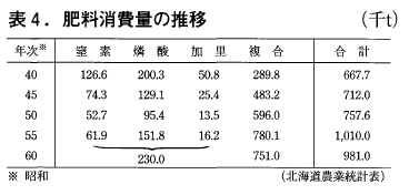 昭和30年頃迄,北海道の施肥量は低く,全国平均を下まわるとされていたが,その後急速に増加している。