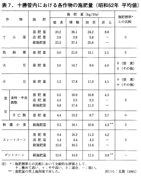 畑作物の施肥実態に関するこの時期の資料は,極めて限られている。その中の昭和52年(1977)に十勝農試が実施した調査報告により当時の施肥実態を紹介する。