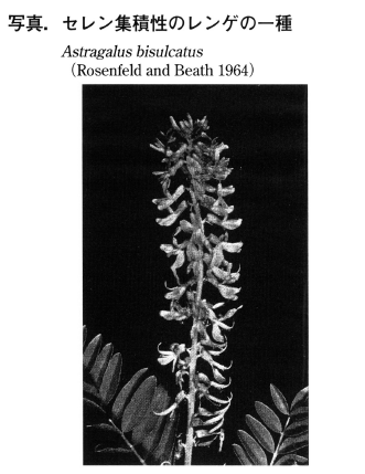 もっとも家畜のセレン中毒は昔ほど問題ではなくなっています。家畜は草が十分にあるときはセレン集積種をさけるからです。現在ではむしろ次に述べるセレン不足の方が問題になっています。