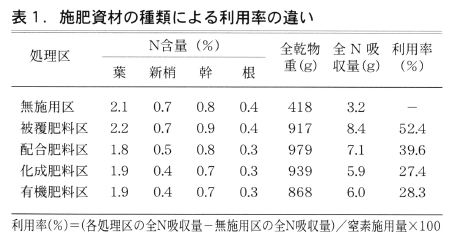 また,被覆尿素肥料は溶出がコントロールされているため根の極端に近い位置に局所施用しても,濃度障害が発生しないでさらに吸収効率の高い施肥が実現する可能性も残されている。