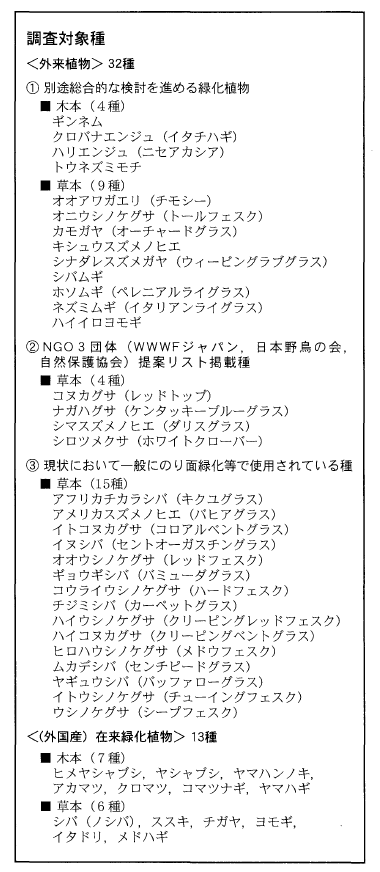 国土交通省などでは,要注意外来生物に対し注意するように促す文書が出されたため,一部では外来緑化植物すべての使用を自主規制するという動きがはじまり,設計・施工サイドに混乱が発生しました。