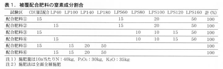 そこで,施肥(追肥)の省力化と施肥量削減を図るために,溶出タイプの異なる被覆尿素を配合した全量基肥施肥に適切な水管理を行い,最も肥効が向上する肥料の組み合わせと施肥方法を明らかにしたので,その概要を簡単に紹介する。