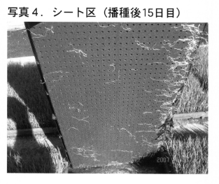 根層の除去作業には多大な労力を必要とする。原(2001)は根の除去装置を考案しているが,設備投資が必要であり,それほど普及していない。また,出根防止用のシートが複数市販されている。これらのシートは比較的安価であり(高橋・吉田2006),長年使用可能な耐久性の高いものもあるが,育苗完了後に洗浄等の作業が必要である。今回,簡便な出根対策を検討したので報告する。