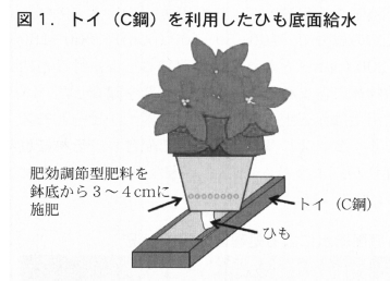 ここでは,冬の鉢花として人気が高いポインセチアについて,養分吸収量を解明し,それに基づいた肥効調節型肥料を用いた底面給水栽培による省力施肥管理技術を確立したので紹介する。