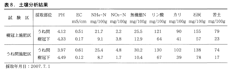 表8にロング施肥l年後の土壌分析結果を示した。
