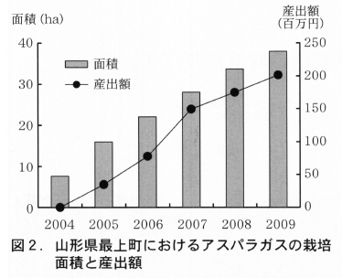 アスパラガスの新産地である最上町では生産者全員がエコファーマーを取得し,面積と生産量の拡大を進めている。また,近隣の市町村でもアス