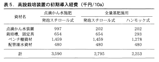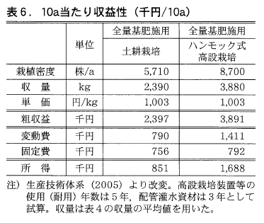 また,ダブルベッド型の高設栽培とすることで単収が向上し,高設栽培の導入経費を考慮してもこれまでの土耕栽培よりも収益性が向上する(表6)。