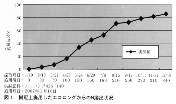 (2)冬季に樹冠上施用したロングからのN成分の溶出は年内にほとんど溶出してしまうこと,