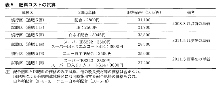 緩効性肥料(IB肥料)を利用した白ネギの追肥回数削減