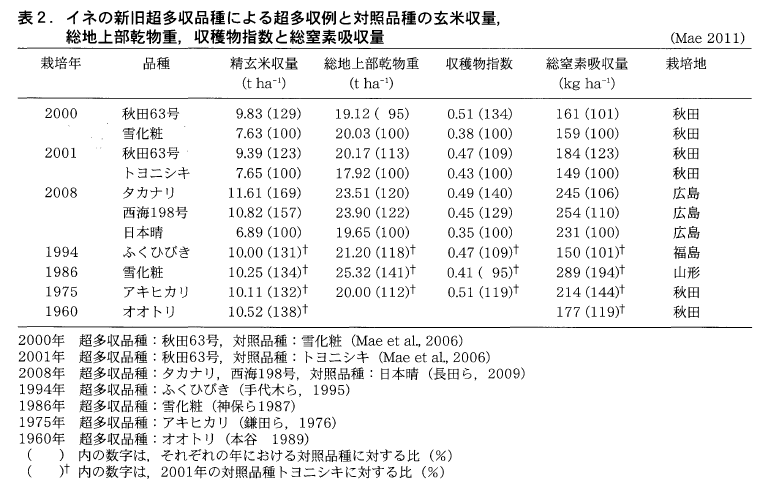 最近の日本におけるイネの超多収例と窒素の吸収利用