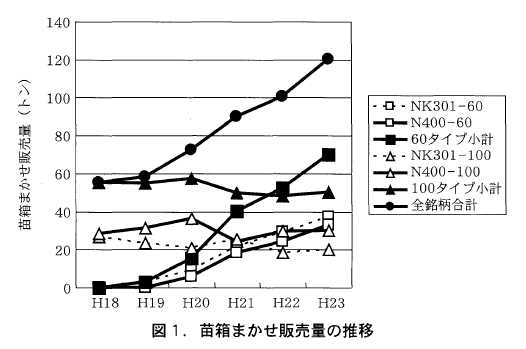 農家からは「省力」的施肥技術,「施肥量を低減する栽培法」を要望され,これら対応する肥料として育苗箱全量施肥専用肥料「苗箱まかせ」が本田追肥を必要としないことから農家の口コミ主導で拡大していたのです。