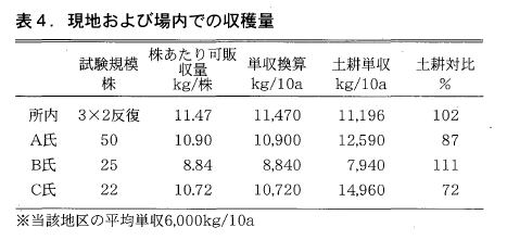 当所内の結果では土耕栽培と遜色ない収量性が得られたため(表4),2011年3戸,2012年4戸のナス農家で現地試験を行いました。
