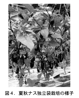 本栽培システムは,現在土耕栽培での生産がうまくいっている農家に取り入れて頂くものではありませんが,土壌病害で困っている農家,ナス栽培に適する圃場が確保できない農家には取り入れて頂く価値のある技術になったと思います。