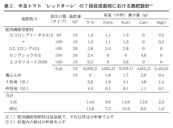 3.促成トマトの防根給水ひも栽培における肥効調節型肥料の適用.