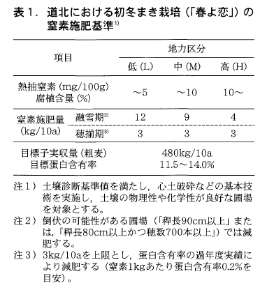 §北海道北部(上川北部・留萌)における春まき小麦「春よ恋」の初冬まき栽培施肥基準