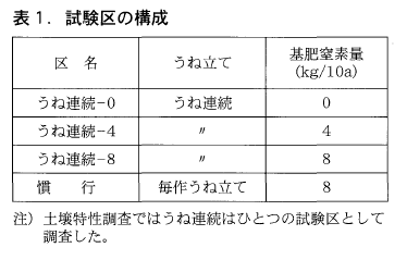 さらに,うね連続栽培では基肥が局所施肥となるため,施肥窒素量の削減による施肥コスト低減についても検討するため,基肥窒素量を0,4,8kg/10aの3水準を設けて栽培試験を実施しました。