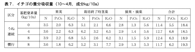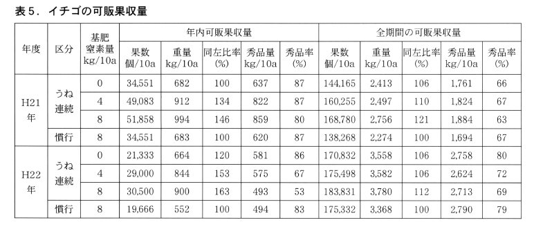 なお,この結果は厚層腐植質黒ボク土で得られた結果であり,さらにイチゴの生産性については品種特性の影響が大きいと考えられますので,今後異なる土壌やイチゴ品種についても検討する必要があると思われます。