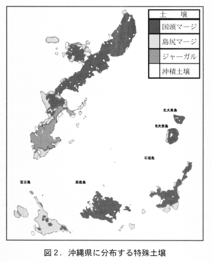 さとうきびの増産を図る上で,沖縄県の島嶼地域に分布している特殊土壌である国頭マージ,島尻マージ,ジャーガルの生産力をどのようにして増強するかが重要である。