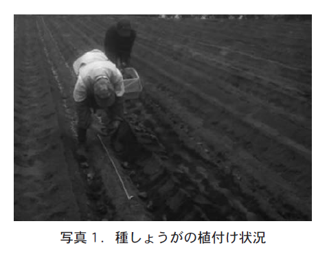 しょうがは,元々熱帯性の野菜であり高温多湿な気象条件を好むため,冬期に低温となりにくい関東以西で主に栽培されている。全国の生産量は平成27年度において49,400tで,県別では高知県が21,400tと圧倒的に多いが,宮崎県におけるしょうが収穫量は2,720tで全国4位に位置している(農林水産省,2016) 。