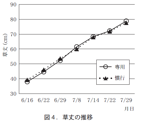 草丈は,専用肥料区と慣行区とも同等に推移した(図4) 。