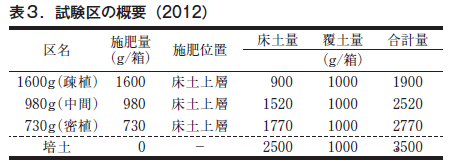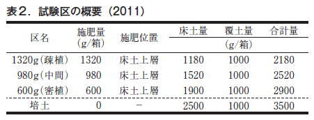 この2010年の結果に基づいて設計,実施した試験の中で,特に2011年の1320g区と2012年の1600g区を中心に考察する。
