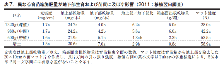-疎植栽培を前提としたプール育苗条件での育苗箱内施肥量の検討-